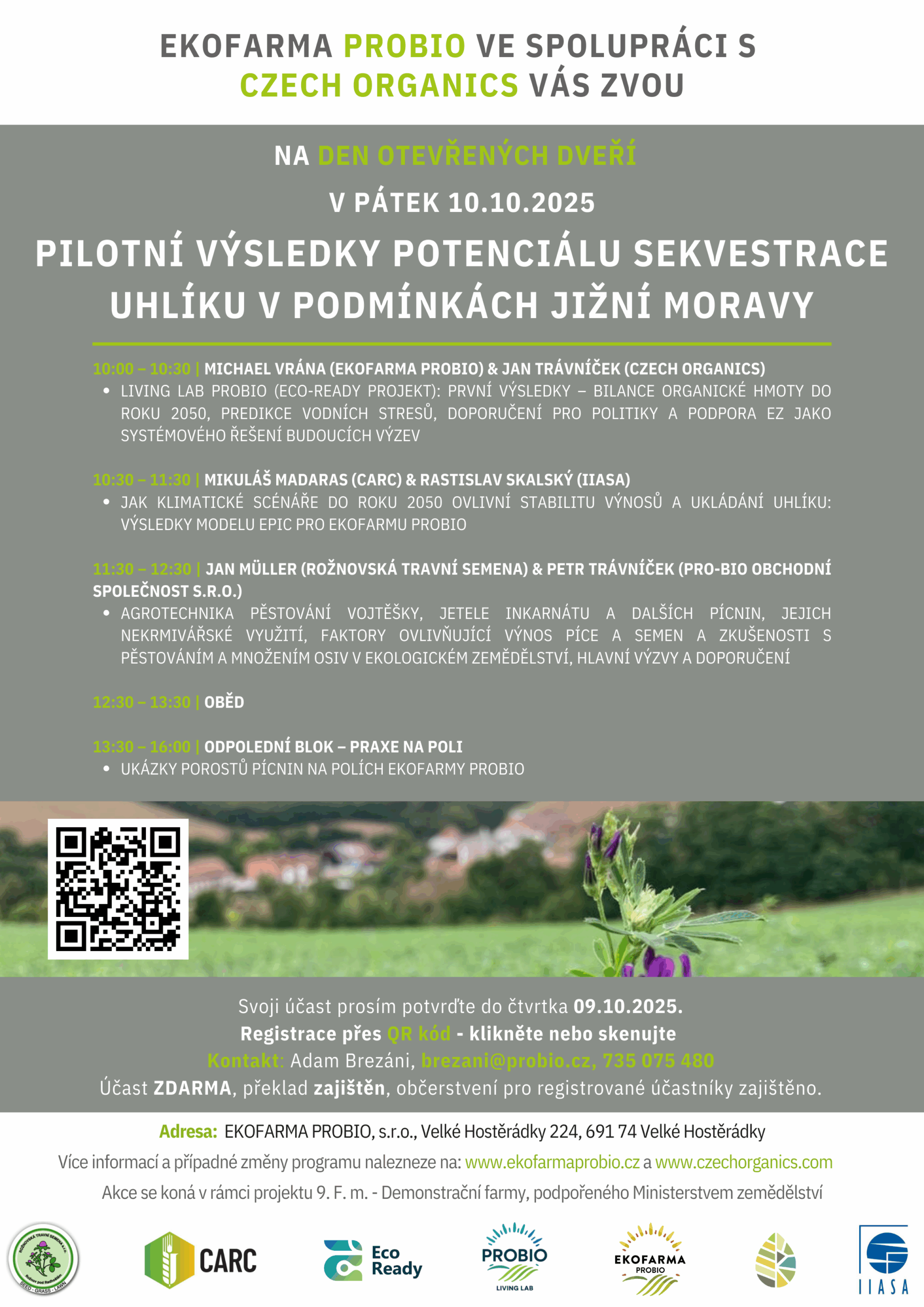 Srdečně Vás zveme na Den otevřených dveří na Ekofarmě PROBIO, který se uskuteční dne 10. října 2025 ve Velkých Hostěrádkách.