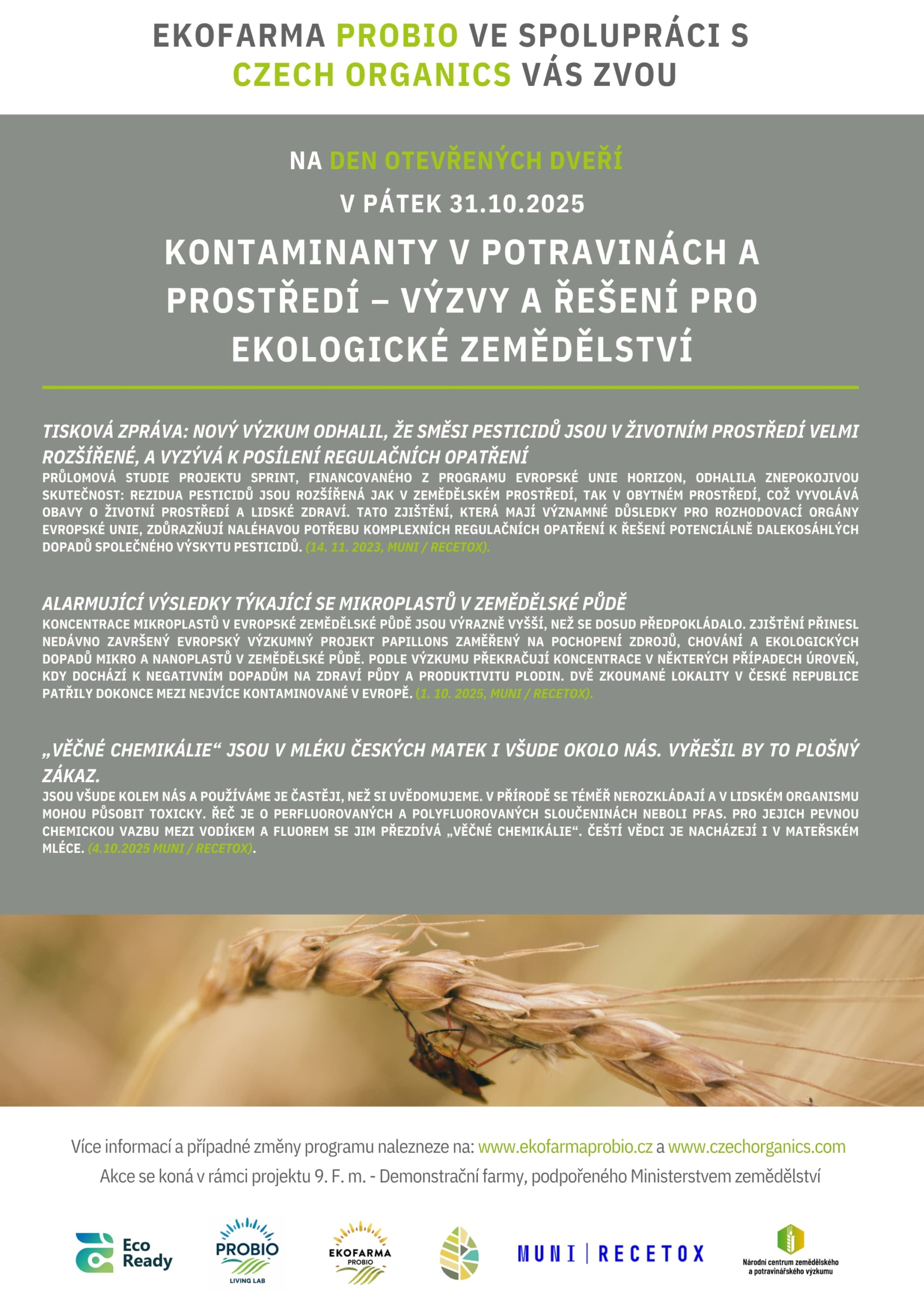 Přijměte pozvání na šestý a poslední demonstrační den roku 2025, který pořádá Ekofarma PROBIO ve spolupráci s Czech Organics.