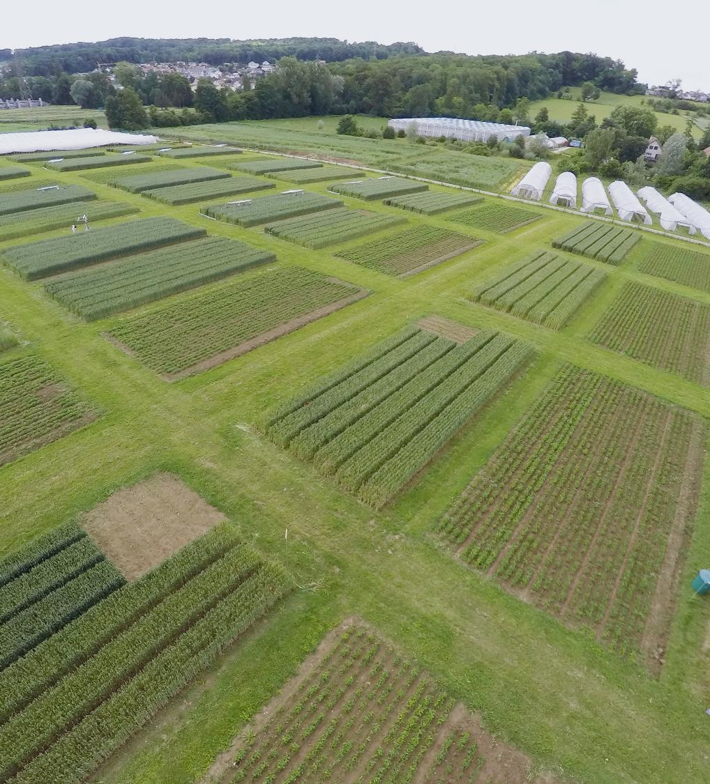 Pole v dlouhodobém experimentu DOK trial – srovnání biodynamického (D), ekologického (O) a konvenčního (K) způsobu hospodaření. © Research Institute of Organic Agriculture FiBL