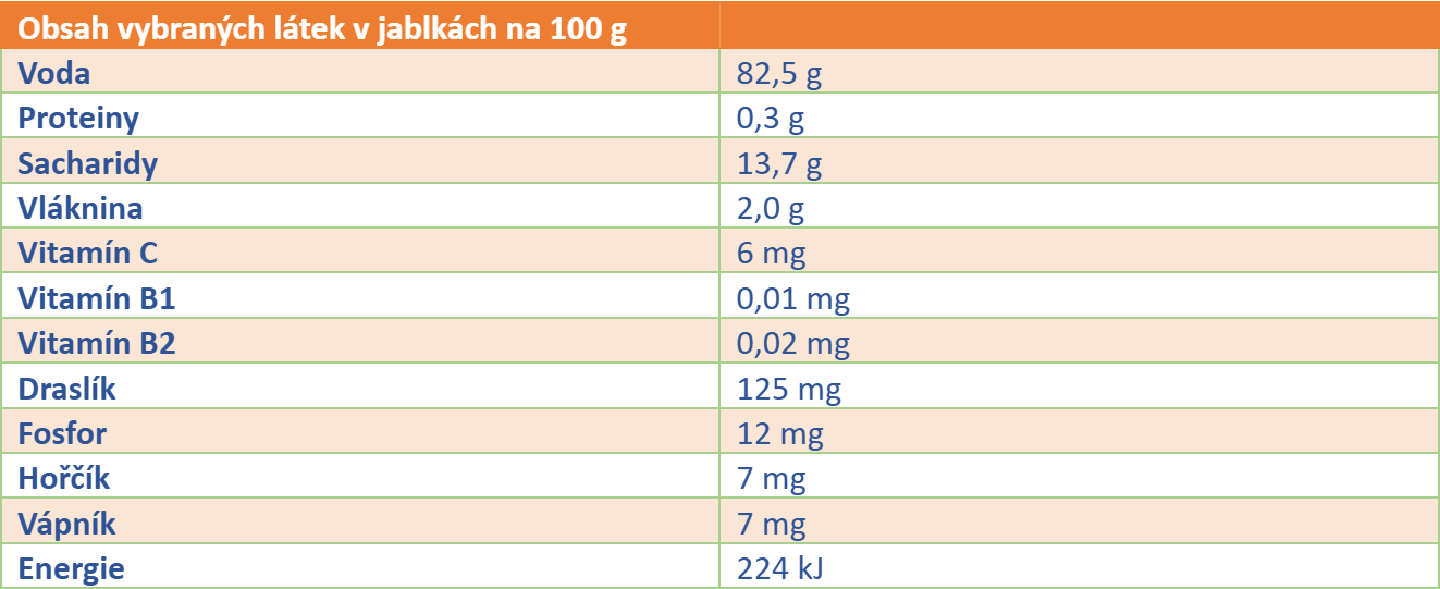 Tabulka 1: Obsah nutričně významných látek v jablkách