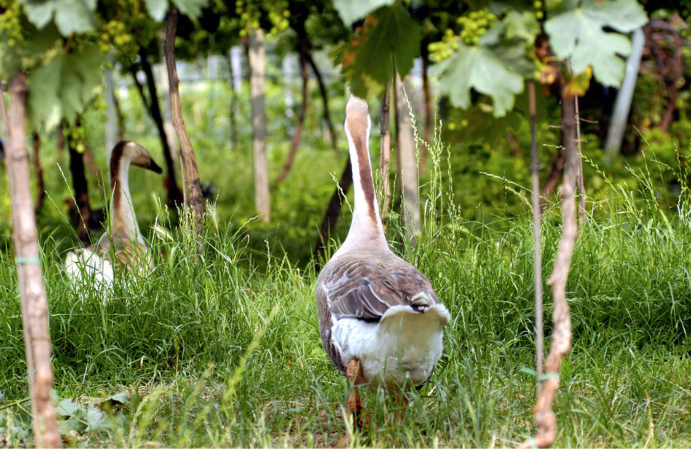 Nacházíme se v 21. století a máme traktory, které jezdí po polích. Nemůžeme je ze dne na den odstavit a všechno zase dělat koňmi. To byl důležitý argument pro celou naši rodinu: aby vše bylo proveditelné a abychom to zaváděli postupně, po malých krůčcích. Tak jsme před několika lety začali jako pilotní projekt proměňovat náš největší, jedenáctihektarový vinohrad. Rozhodli jsme se vykopat některé révové keře, abychom vytvořili prostor pro další rostliny a zvířata. Vznikly tak ostrůvky ve tvaru kapky, které umožňují vjet mezi řady s traktorem a zemědělskými stroji a pracovat na vinici. Vytvořili jsme takto 27 ostrůvků.